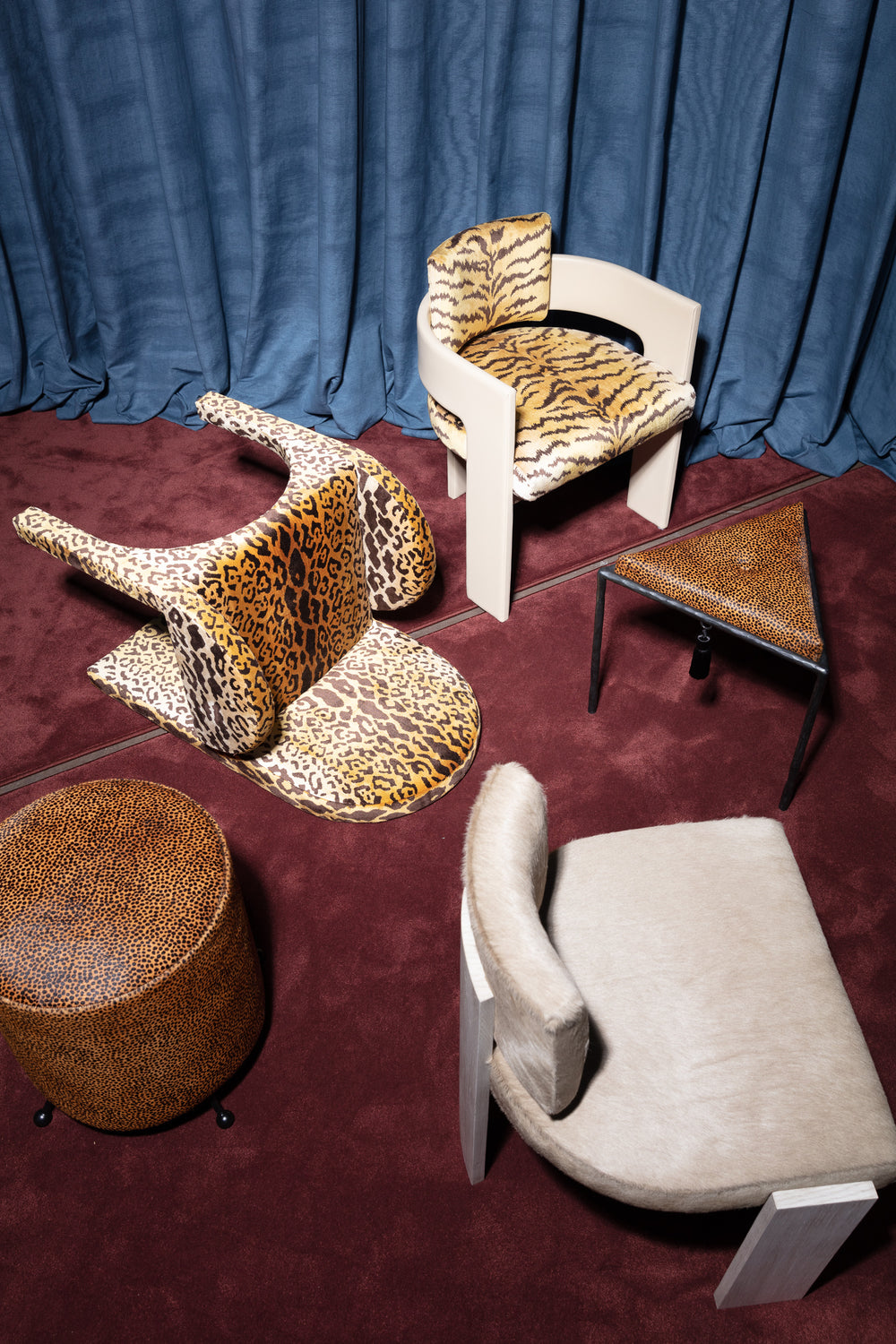 With this enduring spirit in mind, Cuff Studio presents a curated suite of seating options, each adorned in striking animal prints and luxurious hair-on-hide upholstery.