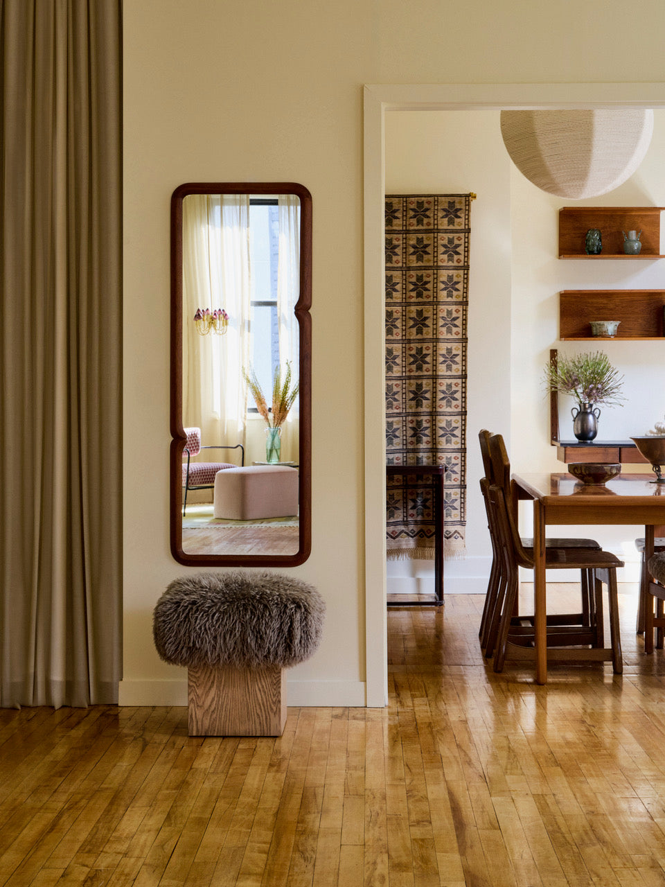 Channeling our inner Fraggle Rock. For any fan of the unexpected or a humorous room modifier, the Fraggle Block Stool brings it all. When the party starts, layer a pair around a coffee table or beside Cuff Studio's Block Side Table for easy additional seating and some interesting conversation. The tactile appeal of the luxurious longhaired lambskin contrasts with an architectural oak block base.