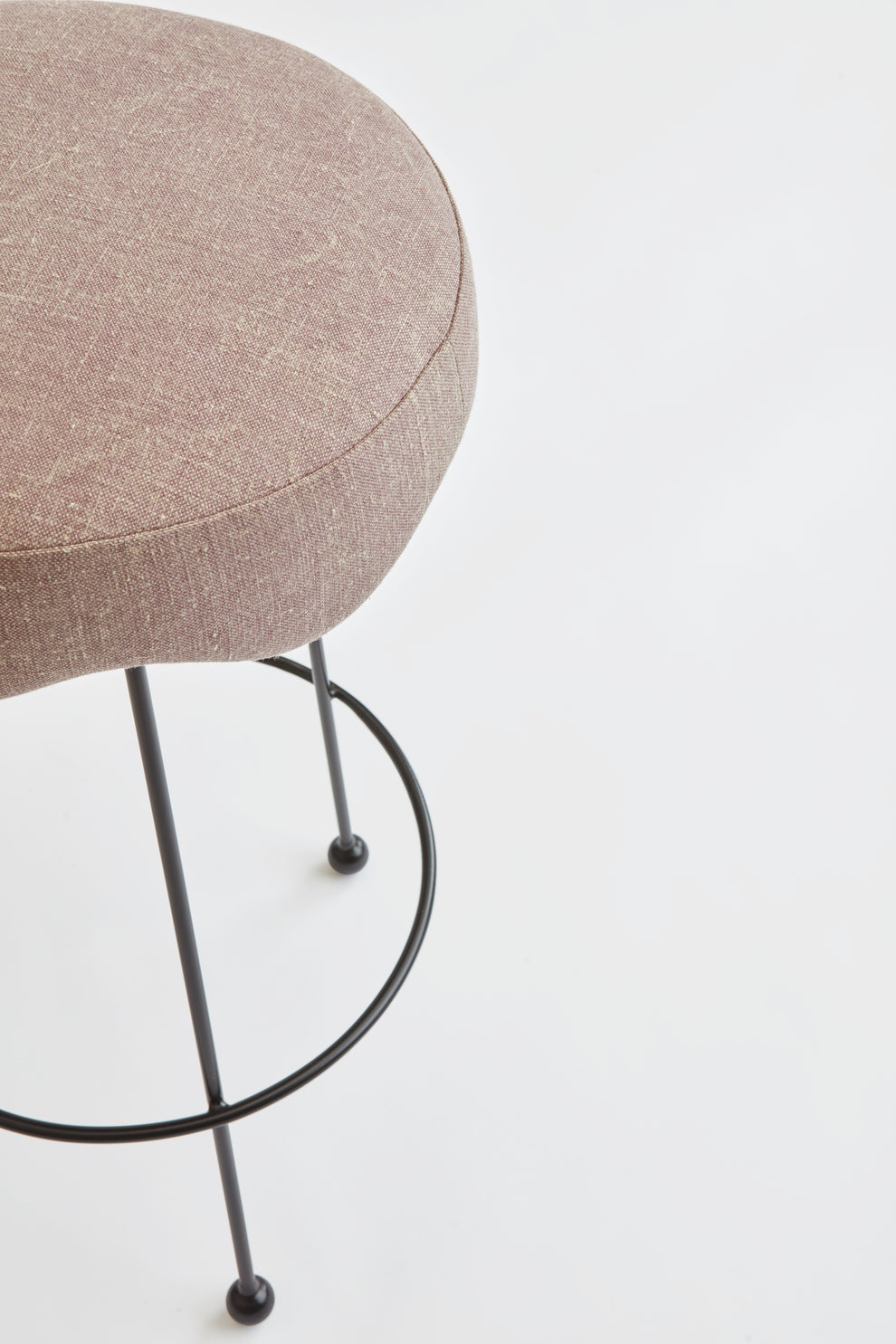 Inspired by Jean Royere with a romantic silhouette, an undulating upholstered top, and a slim iron leg base with ball feet, the Ripple Swivel Stool conveniently tucks away and is simultaneously discreet, comfortable, and functional.